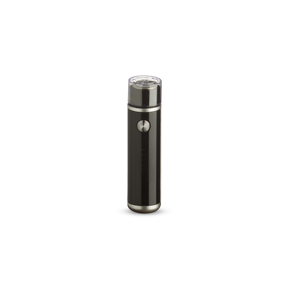 Aparador de barba elétrico recarregável. Possui status da bateria visível e botão antiderrapante para uma maior aderência ao toque. Acompanha cabo USB Tipo-C, escovinha para limpeza e tampa protetora.