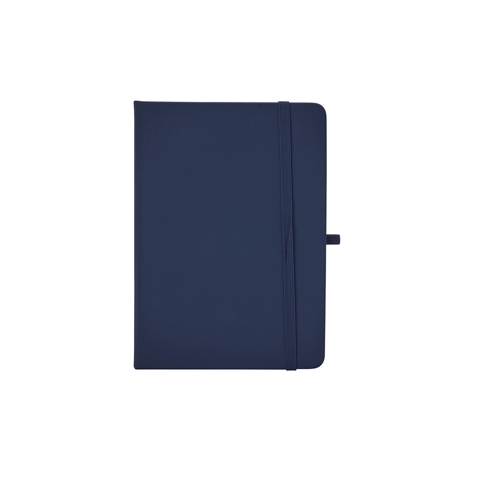 Caderneta emborrachada com suporte para caneta, elástico para lacre e marcador de página em cetim, contém aproximadamente 80 folhas com pauta na cor branca.