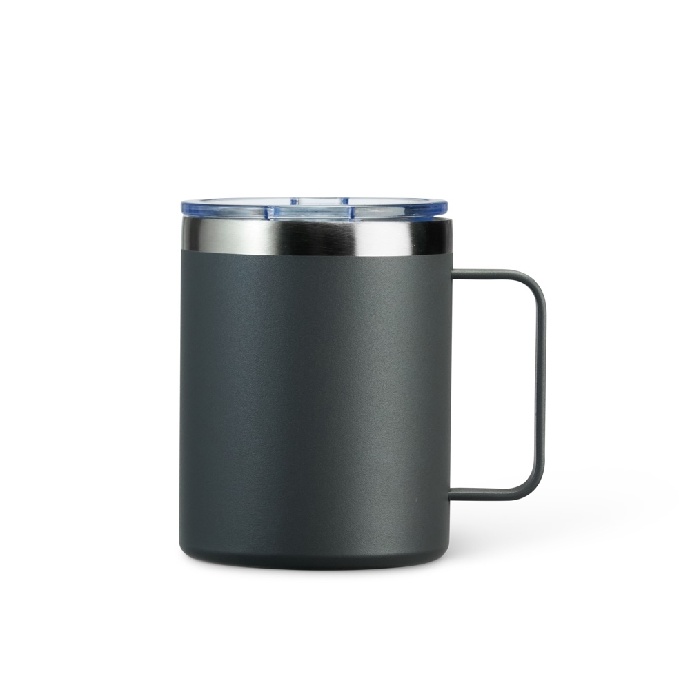 Caneca térmica em inox livre de BPA, com pintura eletrostática e capacidade de até 320ml. Conta com estrutura de parede dupla e vedação a vácuo, o que ajuda a conservar a temperatura de bebidas por mais tempo. Possui tampa plástica com proteção para o bocal.
