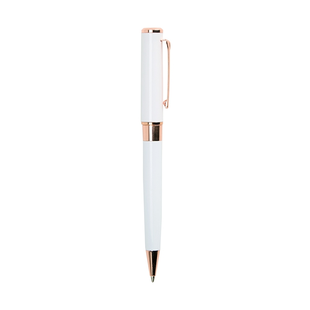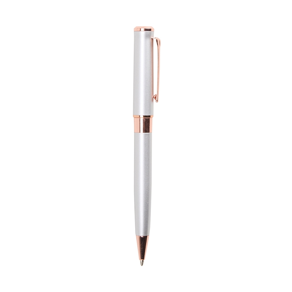 Caneta esferográfica de carga azul de 1.0mm com acionamento por rotação e construção totalmente em metal, que proporciona uma pegada confortável para uma escrita mais precisa.