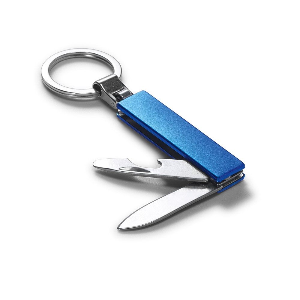 Chaveiro multifunções em metal. 13 x 55 x 7 mm