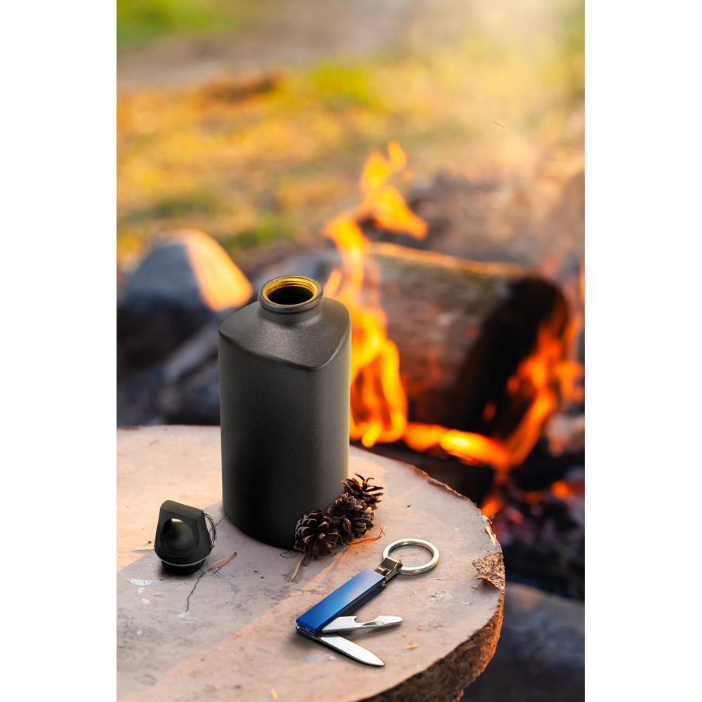 Garrafa esportiva em alumínio e acabamento metálico com mosquetão 400 mL