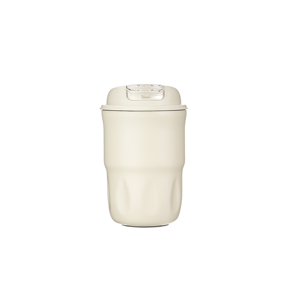 Copo térmico em inox com pintura eletrostática, base antiderrapante e capacidade máxima de 350ml. Conta ainda com tampa rosqueável em plástico com trava de segurança e acesso para alças. Acompanha alça em nylon com detalhe em couro sintético.