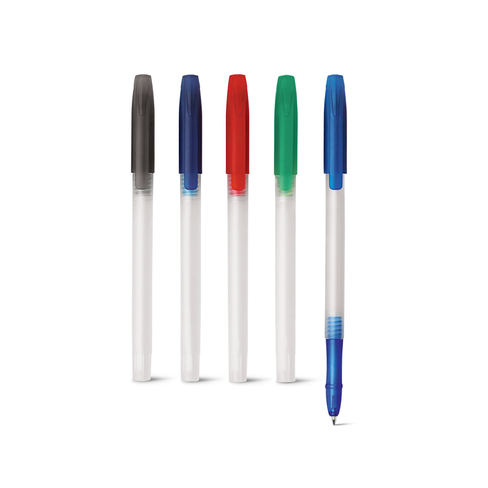 Esferográfica em PP com acabamento frost. Até 1.5 km de escrita. ø10 x 142 mm