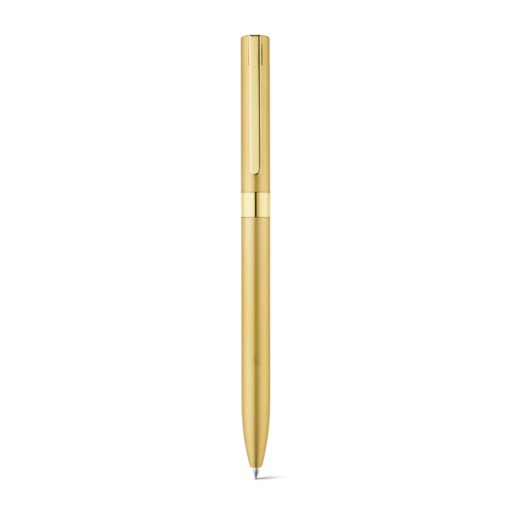 Esferográfica em alumínio com mecanismo twist e clipe de metal. Disponível em elegantes cores. Até 2 km de escrita. Escrita em preto. ø10 x 140 mm