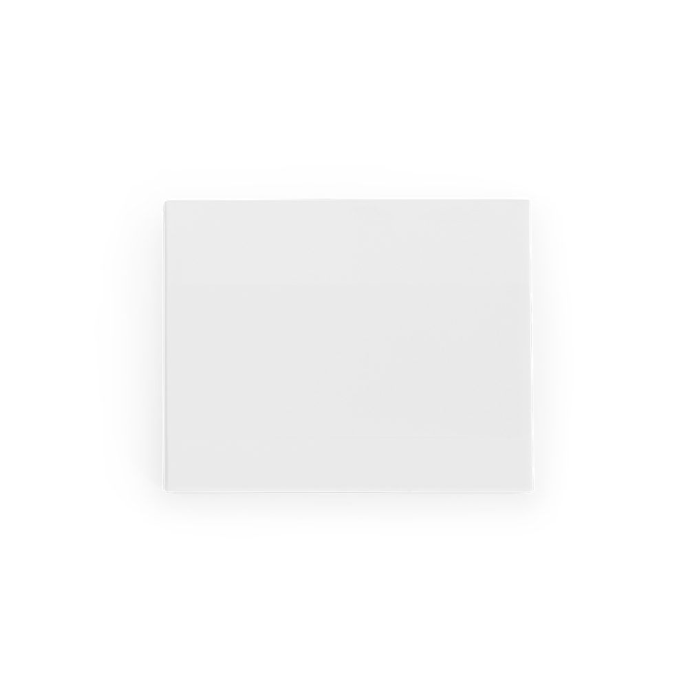 Espelho retangular duplo sem aumento, material em plástico resistente com uma faixa na superfície e verso liso.