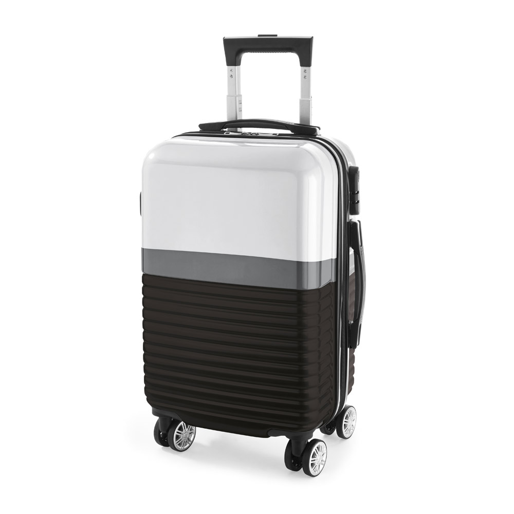 Mala de viagem executivo em ABS e PC com interior forrado e divisória. Fecho de segurança com senha na lateral, 4 rodas duplas giratórias e pega extensível em alumínio com mola (altura da pega estendida até 510 mm). Capacidade até 33 L e peso de 2.70 kg. 335 x 550 x 230 mm