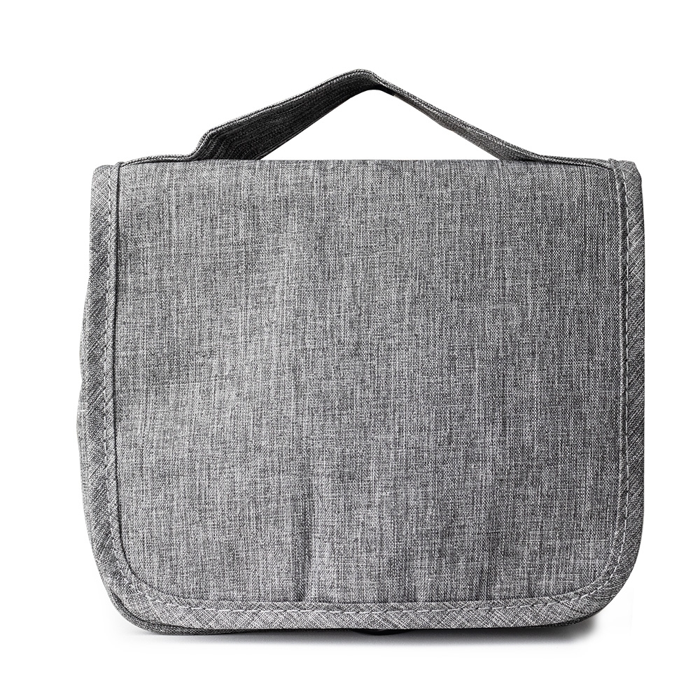 Nécessaire confeccionado em Nylon Oxford resiste à água. Possui compartimento principal com visor em tela de nylon e outros dois em formatos distintos: um em PVC com fechamento em zíper e outro em tela respirável de nylon. Conta ainda com gancho plástico para manter a bolsa pendurada enquanto aberta.