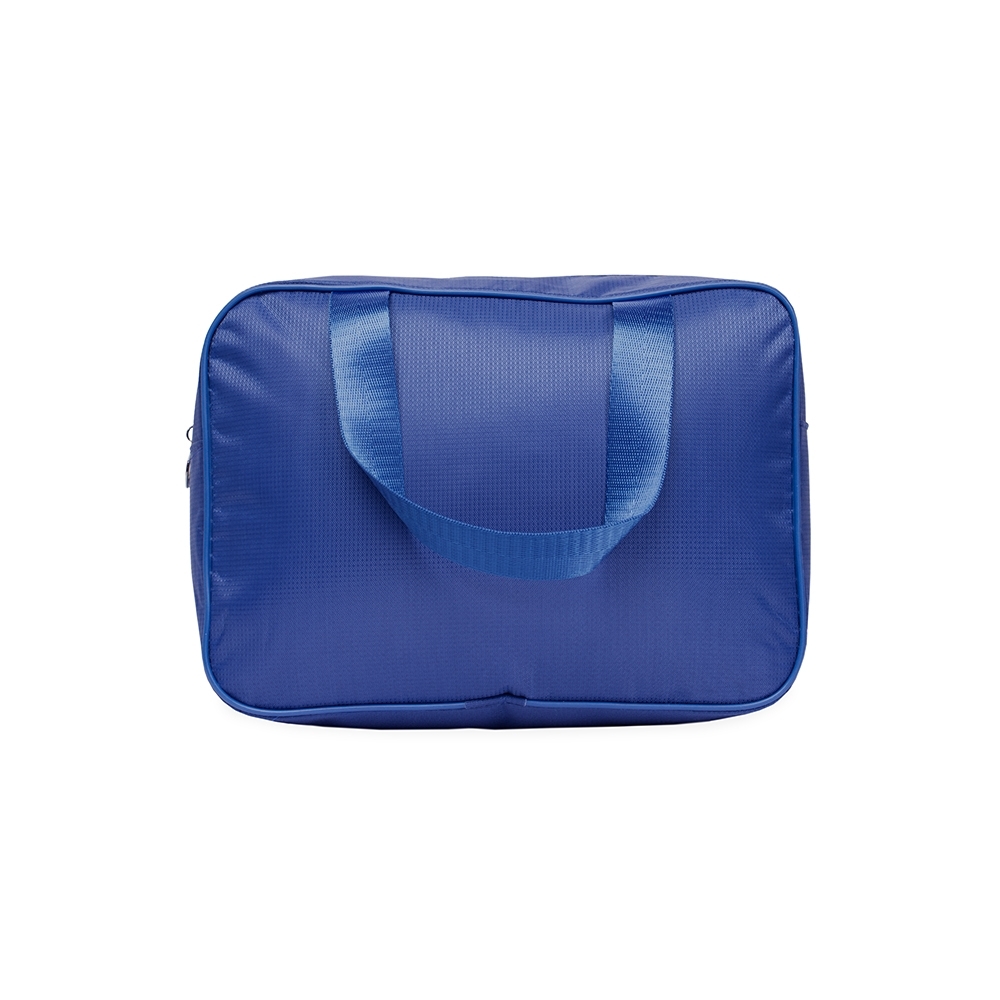 Nécessaire impermeável confeccionada em Poliéster e revestimento interno em PVC. Possui fechamento em zíper e duas alças em nylon.