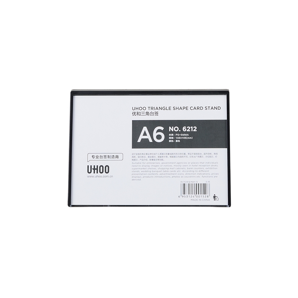 Expositor porta retrato A6 feito em poliestireno com placa acrílica.