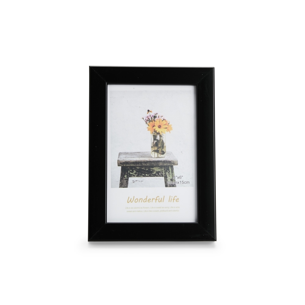 Porta-retratos para fotos 10 x 15 com ideal para uso na vertical ou na horizontal. Possui moldura em PVC, visor em folha de acetato, fundo em MDF e travas metálicas.