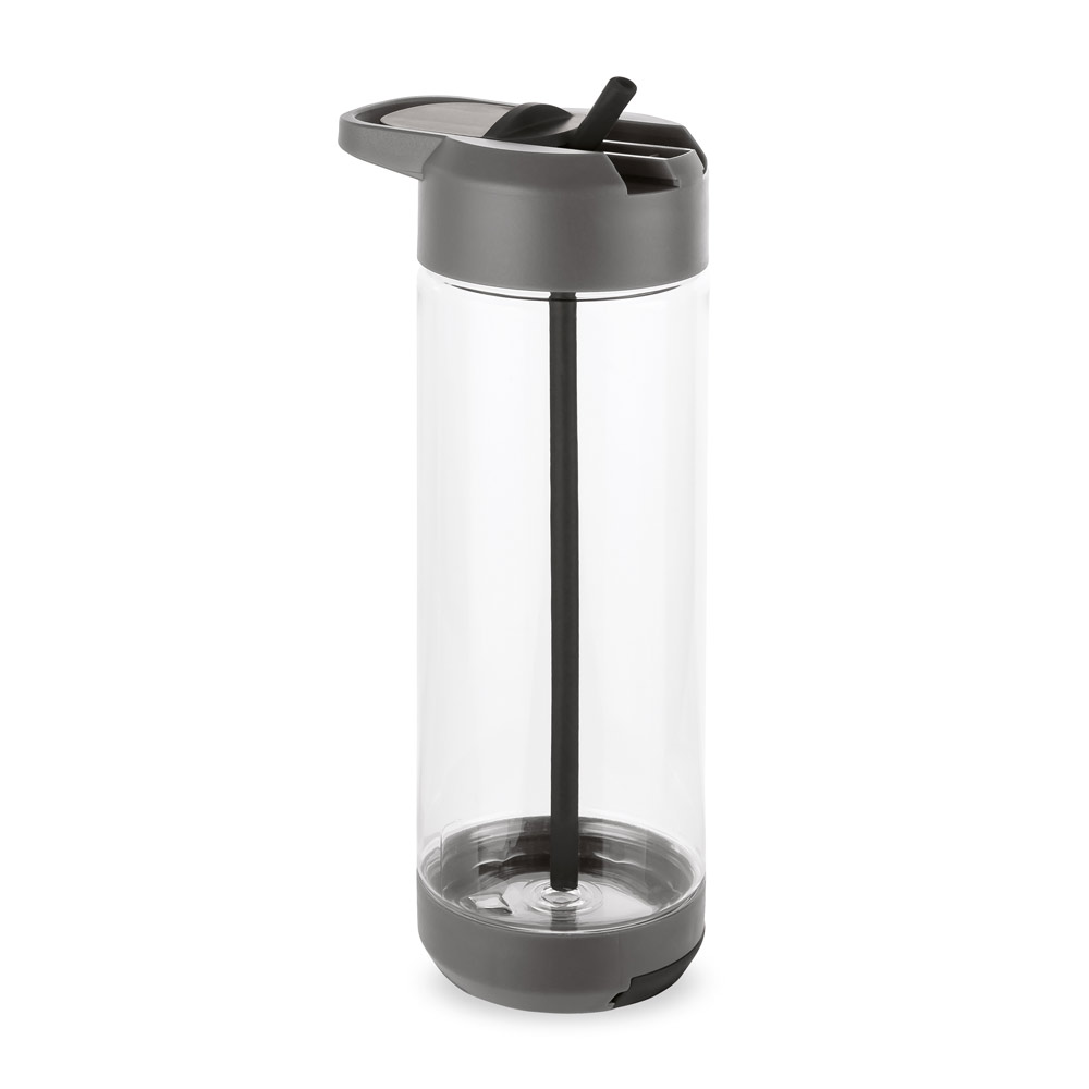 Squeeze em tritan™ com tampa em PP, canudo flexível (no interior) e com sistema de abertura e fecho fácil. Contém suporte para celular e tem capacidade até 750 mL. Caixa branca 94657 vendida opcionalmente. Certificação EU Food Grade. ø75 x 222 mm
